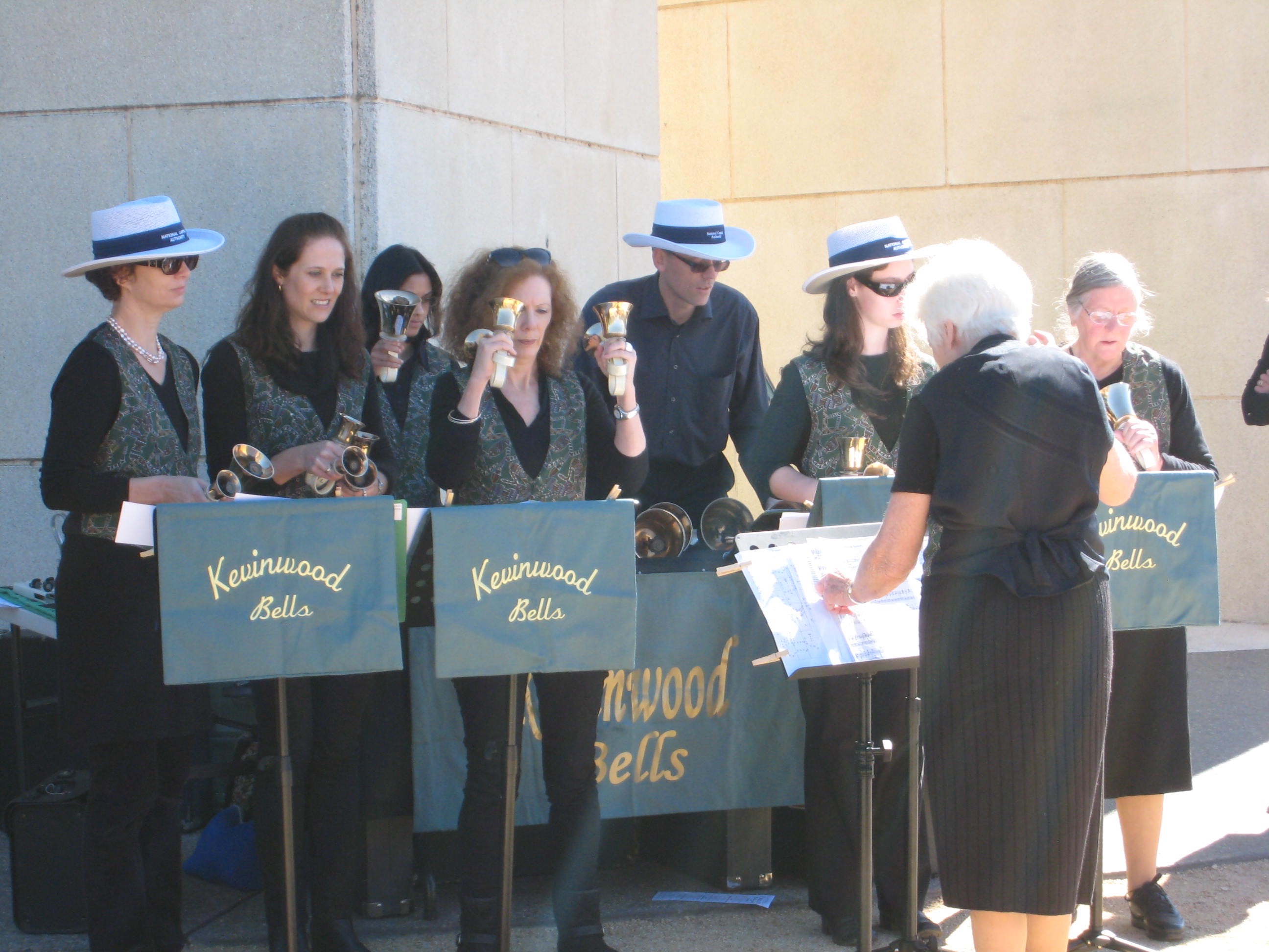 Their International Symposia appearances include Adelaide , Japan, Brisbane and Vancouver (July 2016) .They were the only Australian team performing at the the Vancouver Symposium, joining 750 players from around the world in massed ringing and also giving two team performances - The Swan (from Saint Saens Carnival of the Animals) and Brubeck's Take Five, both works arranged by team member Peter Hogg. Kevinwood Bells also presented two workshops - one an Australian Cultural "Christmas in July", sharing some of the traditions of this concept with ringers from the northern hemisphere and a second one on Off-Table-ringing, a style historically from England but chosen by Kevinwood as their main style of concert bellringing. Great interest was expressed in this by the delegates.